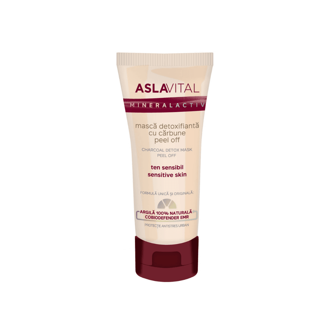 Charcoal detox mask Peel-Off Aslavital Mineralactiv heeft een filmvormende structuur die synergetisch werkt met de actieve kool in de samenstelling en zorgt voor absorptie, zuivering en ontgiftende eigenschappen.